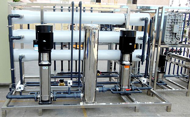 納濾:也稱松散式逆滲透,它與逆滲透的基本原理是一樣的只不過脫鹽率略低于逆滲透。“滲透”是一種物理現象,當兩種含不同濃度鹽類的水,如用一張半滲透的薄膜分開就會發現,含鹽量少的一邊的水分會頭國膜滲到含鹽量高的水側,試加一個壓力,其結果也可以使上述滲透停止,這時的壓力稱為滲透壓力。如果壓力再加大,可以使水向相反的方向滲透,而鹽分剩下。因此膜滲透除鹽原理,就是在有鹽分的水中(如原水),施入比自然滲透壓力更大的壓力,使滲透向相反方向進行,把原水中水分子壓到膜的另一邊,變成潔凈的水,從而達到除去水中鹽分的目的,這就是納濾、反滲透除鹽的原理。